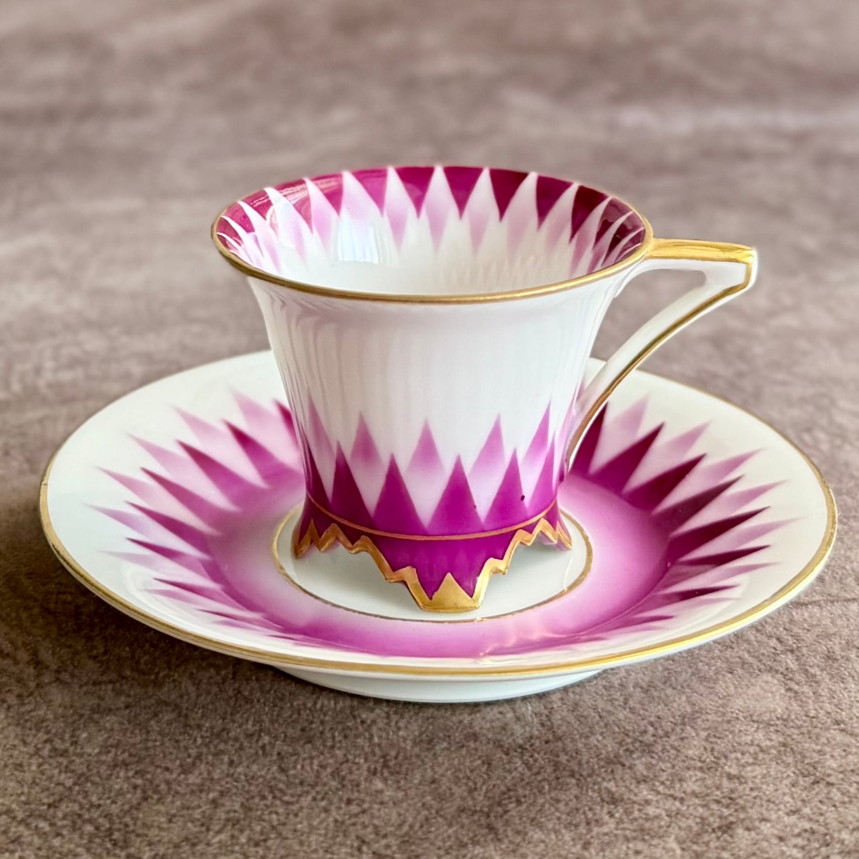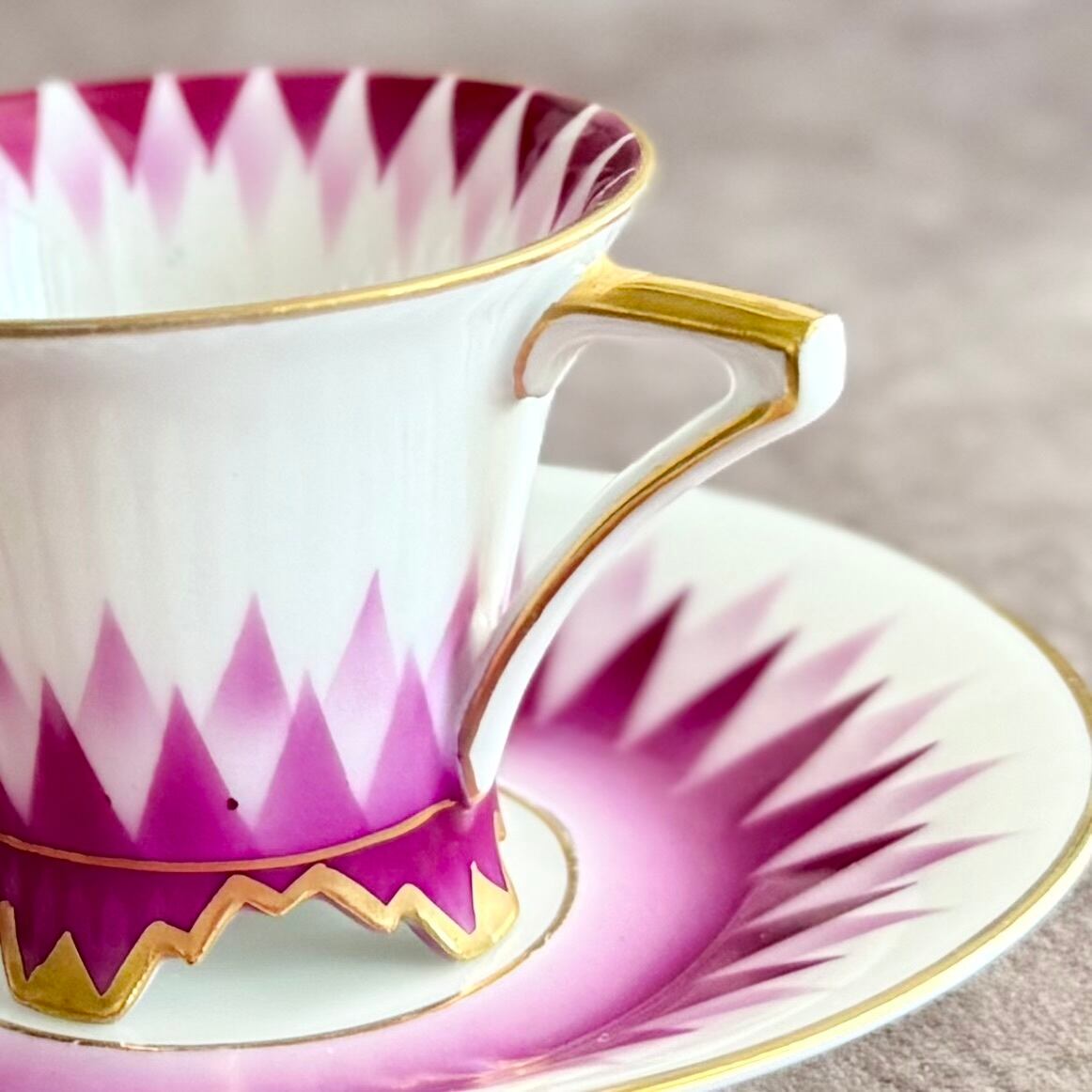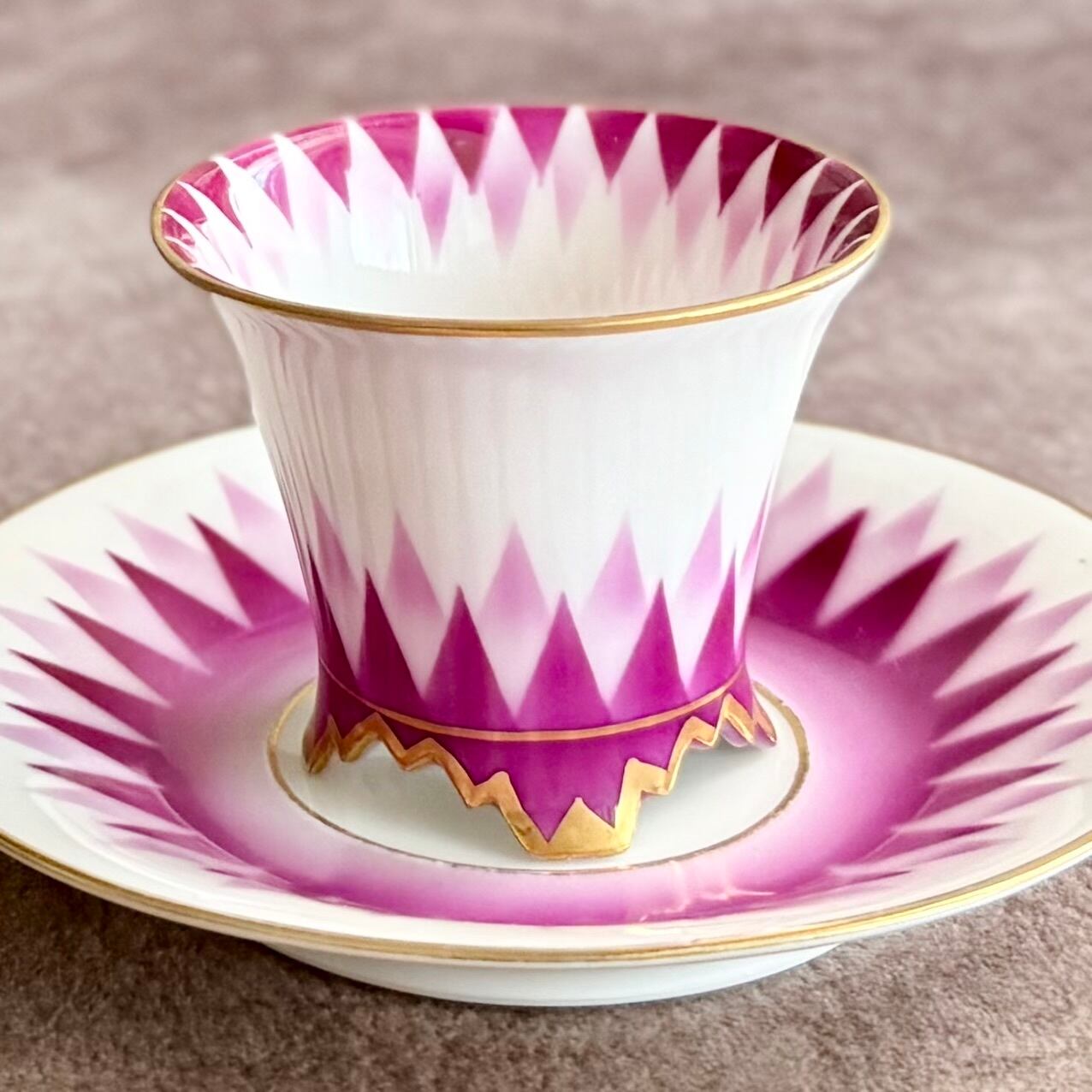 メベンドルフ■ アールデコ 幾何学文 パープル カップ&ソーサー