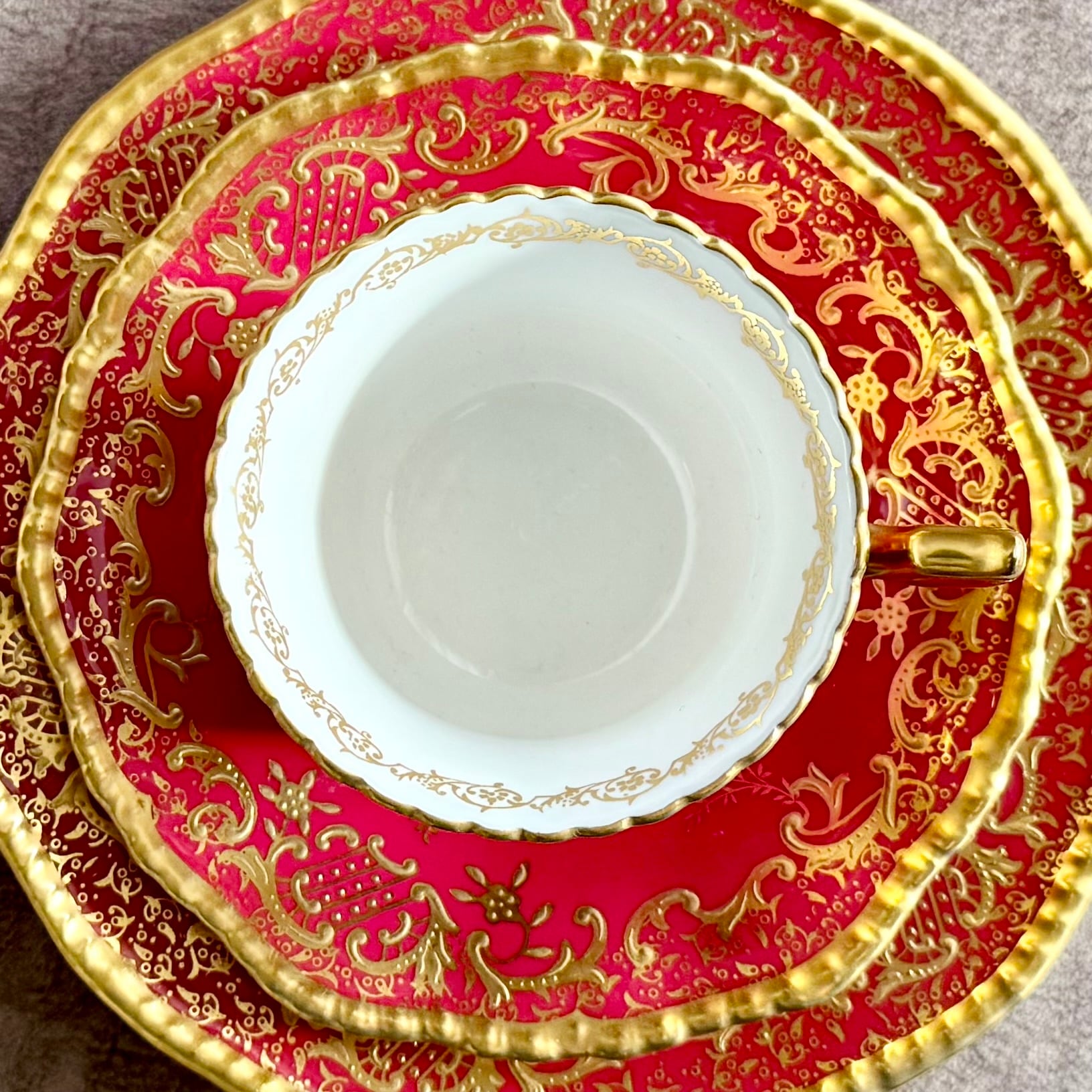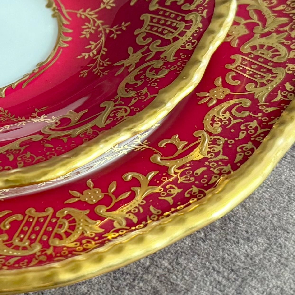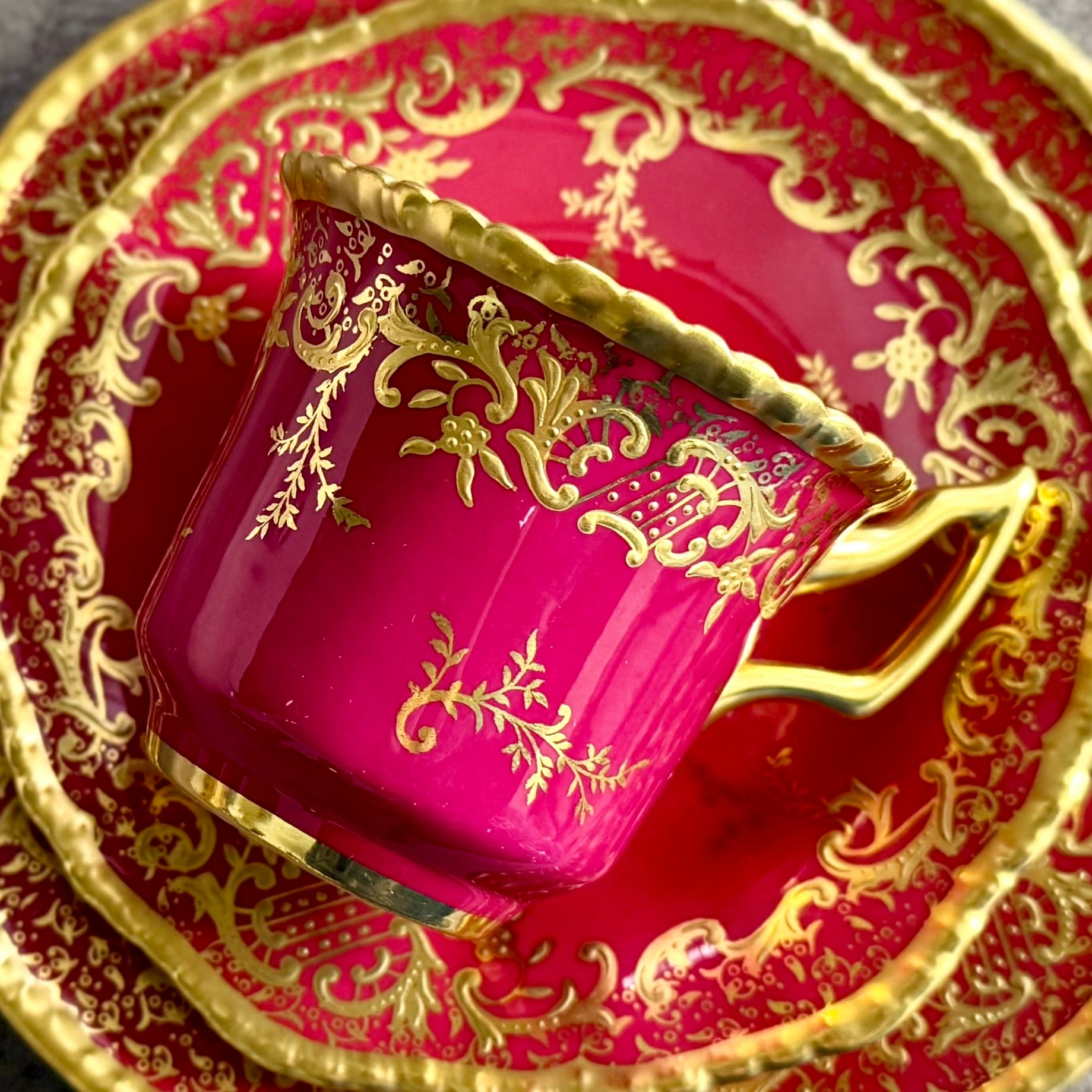 深い燕脂地にゴージャスなレイズドゴールド。精度も非常に高く、同窯の技術力の高さが窺えます。