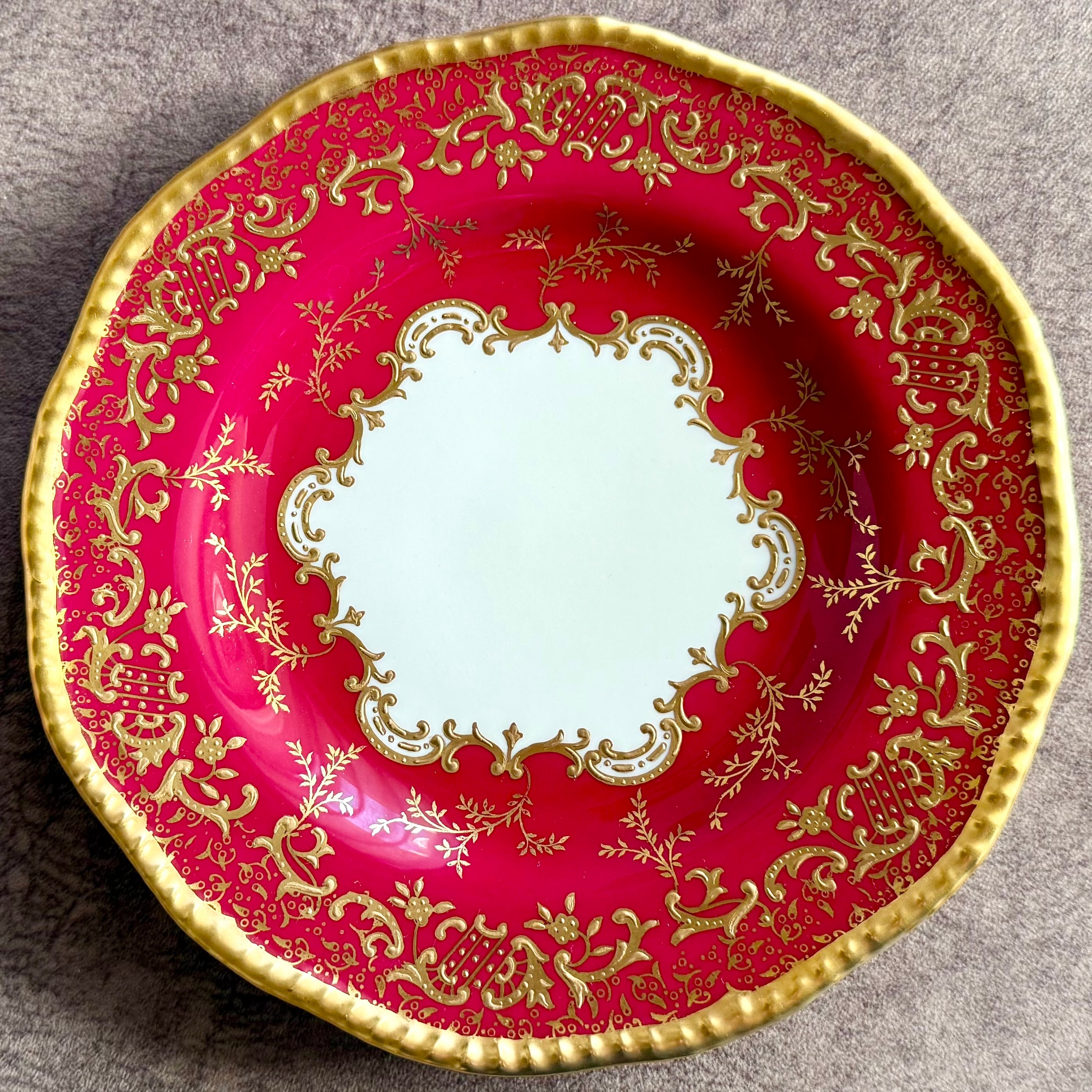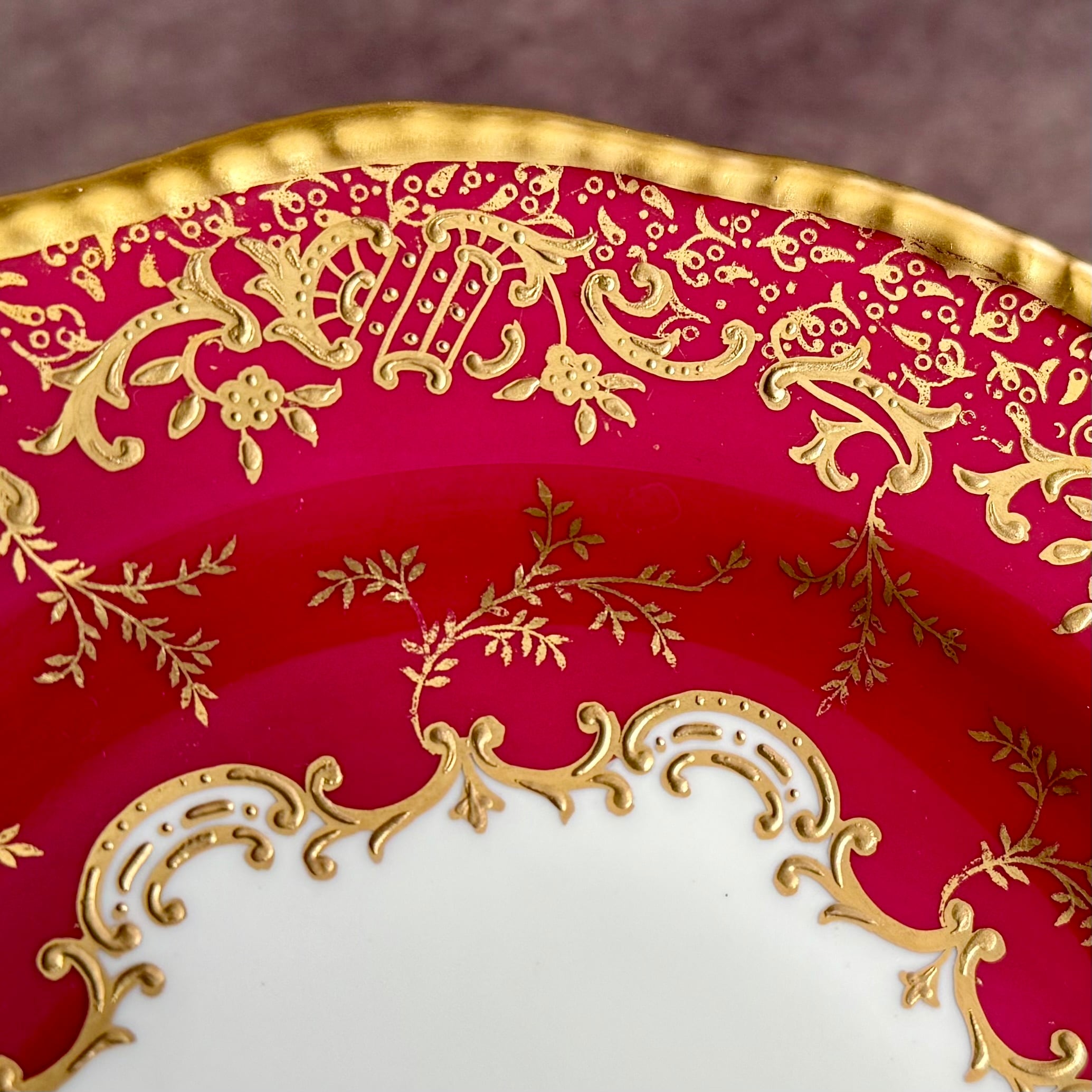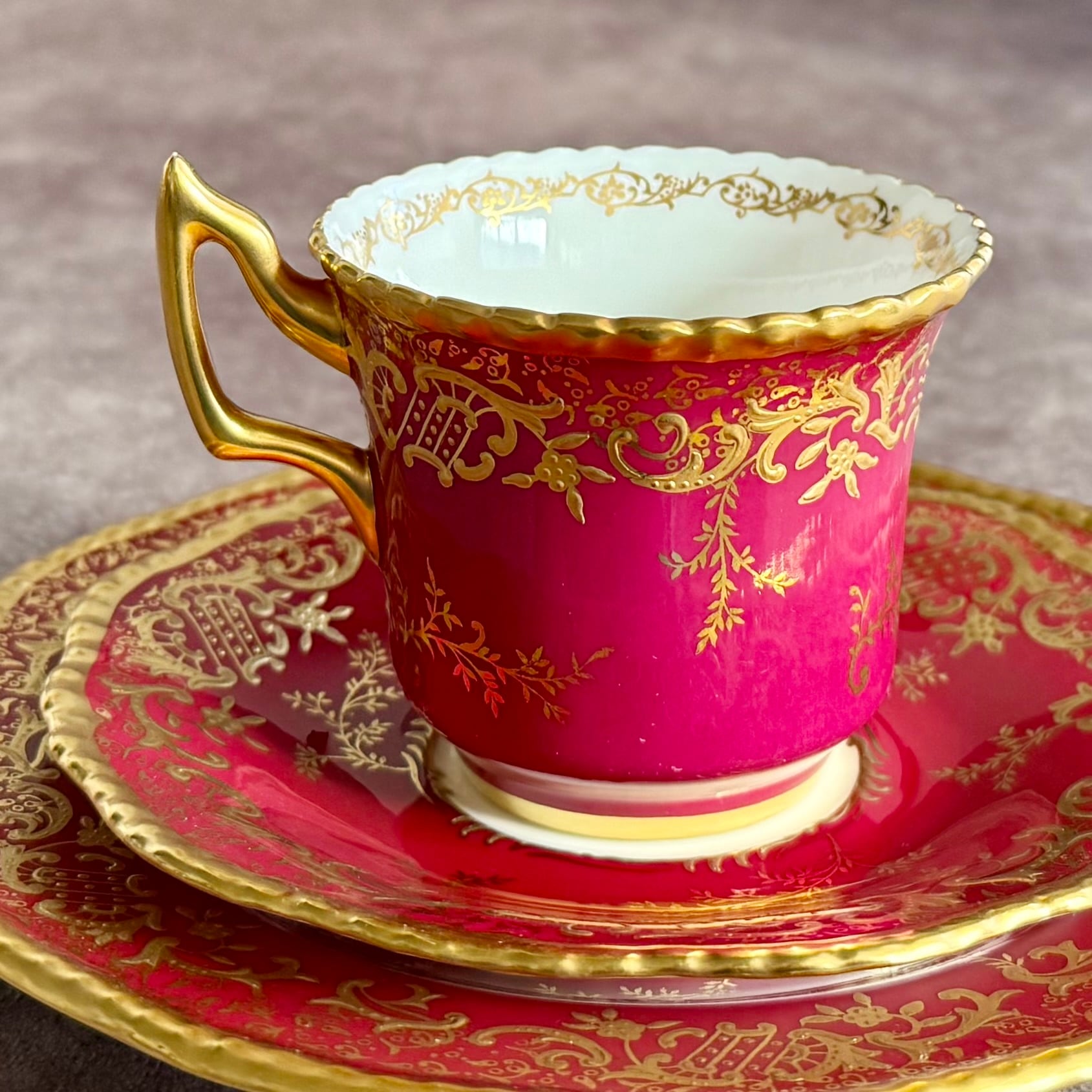 深い燕脂地にゴージャスなレイズドゴールド。精度も非常に高く、同窯の技術力の高さが窺えます。