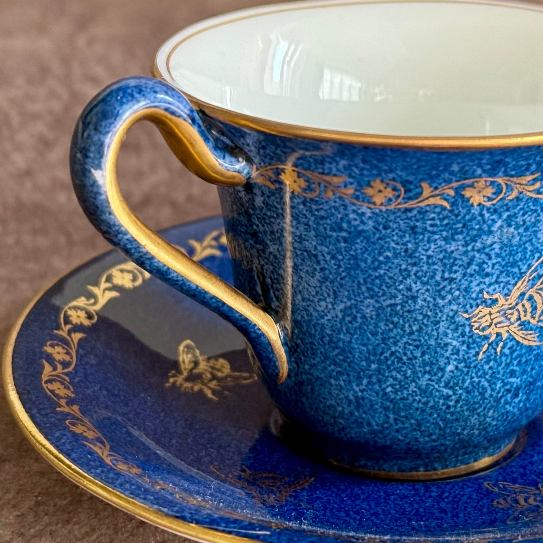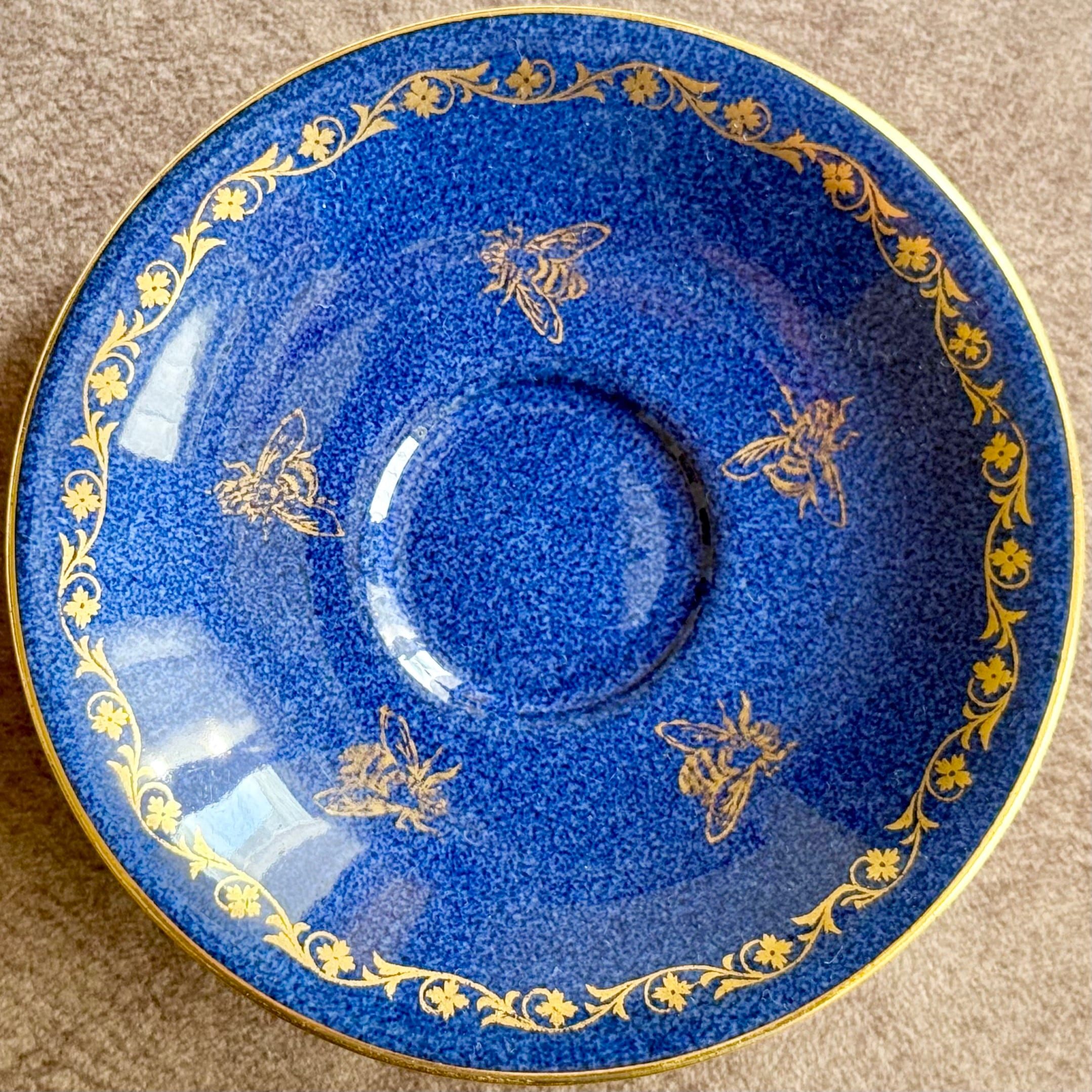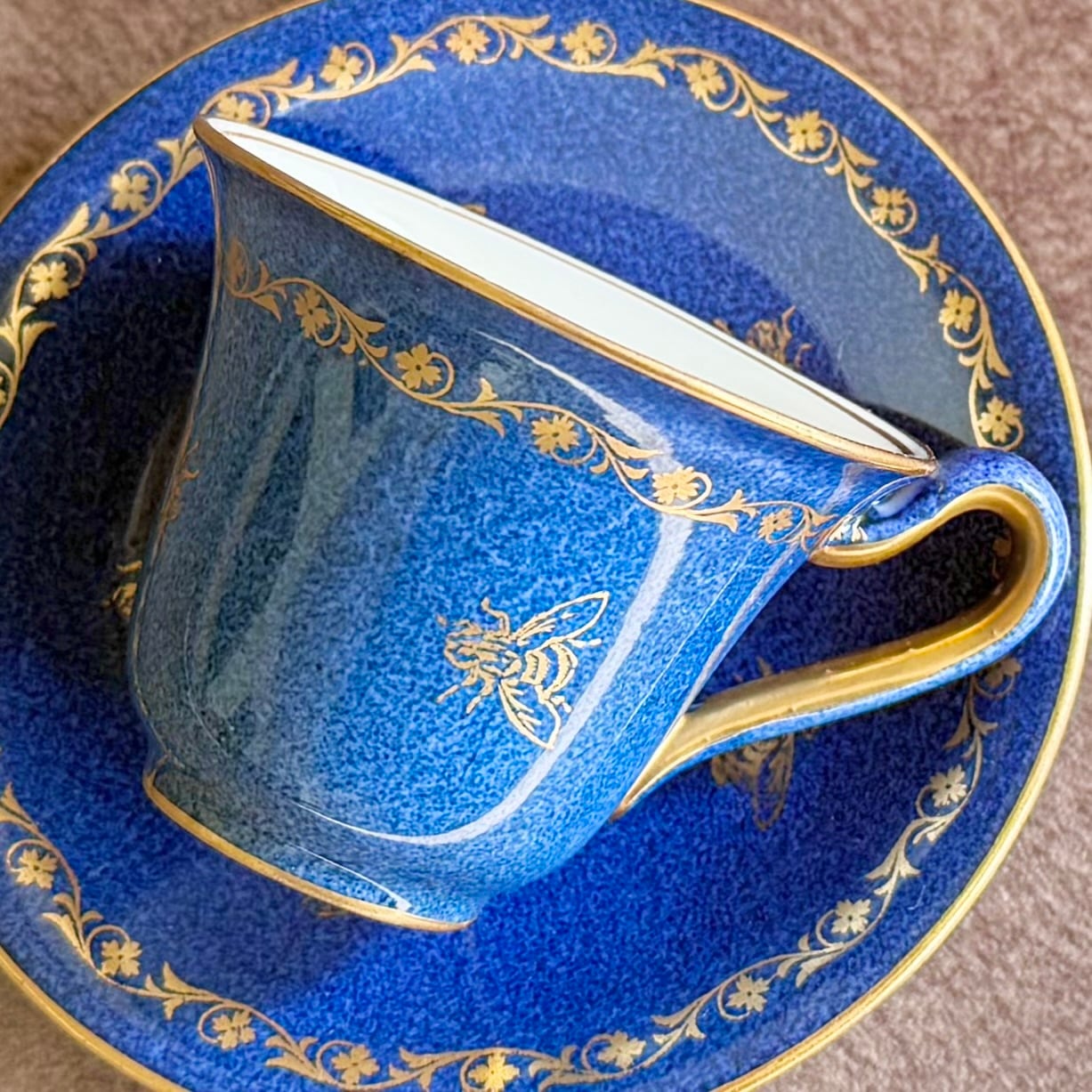 深く艶やかなパウダーブルー地に、金彩による蜂文。非常に珍しい意匠の一客です。