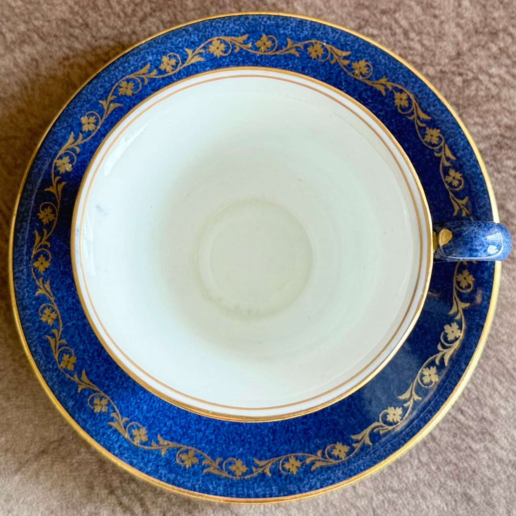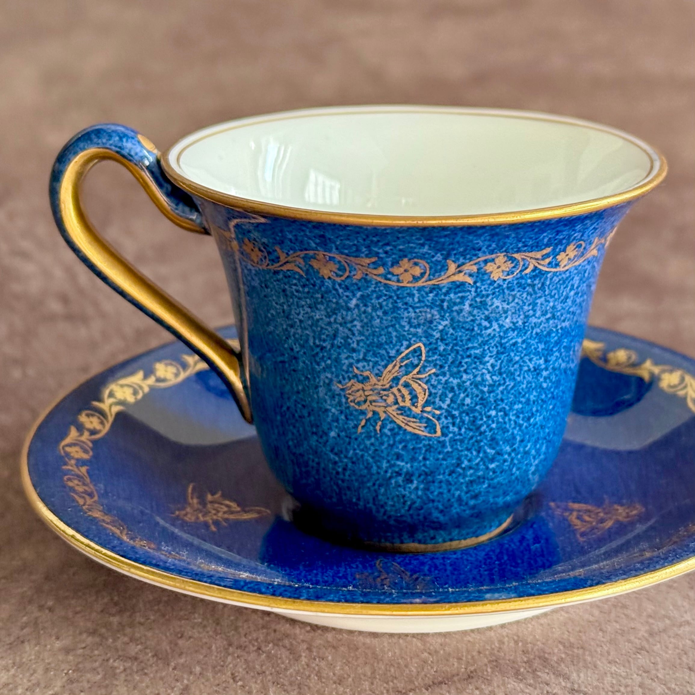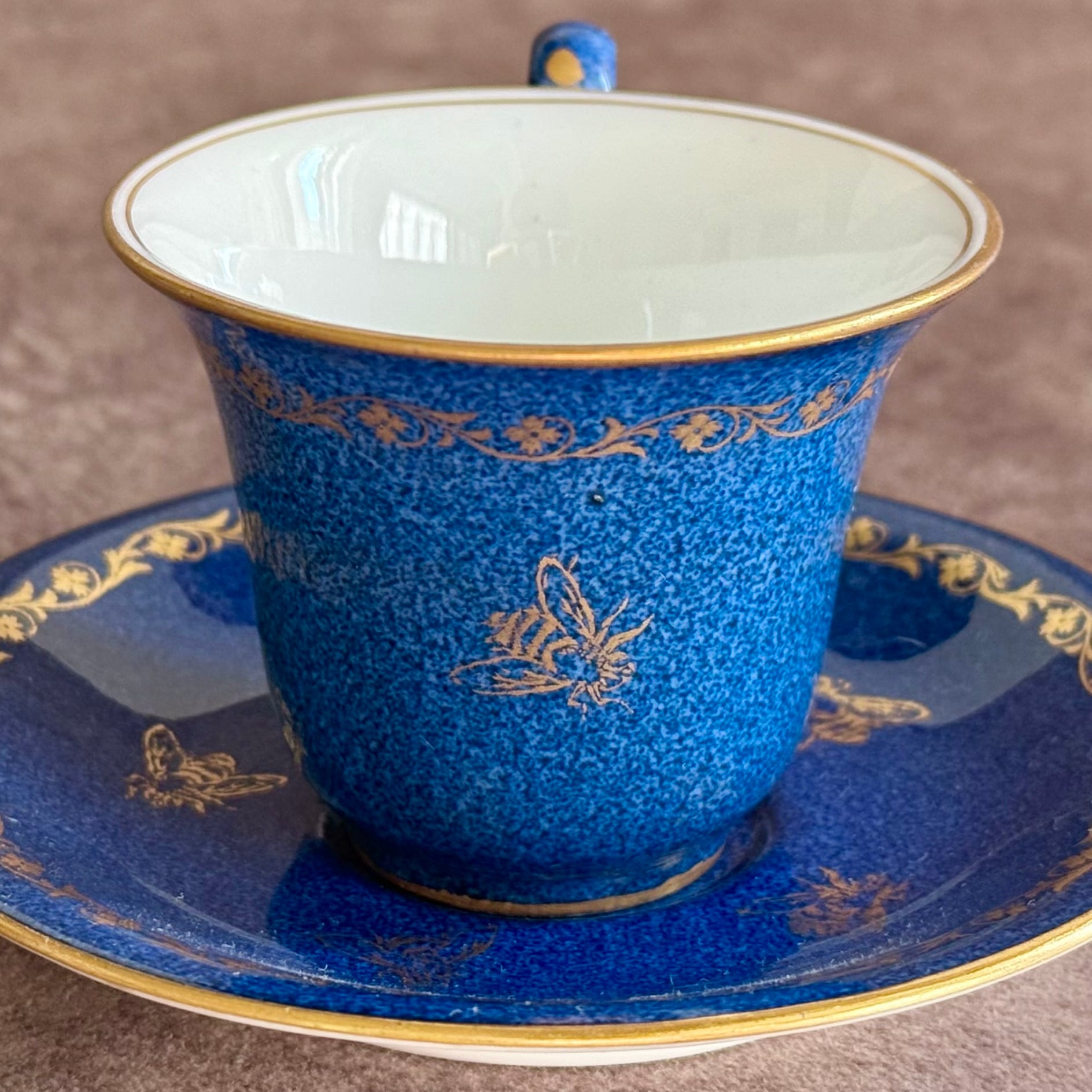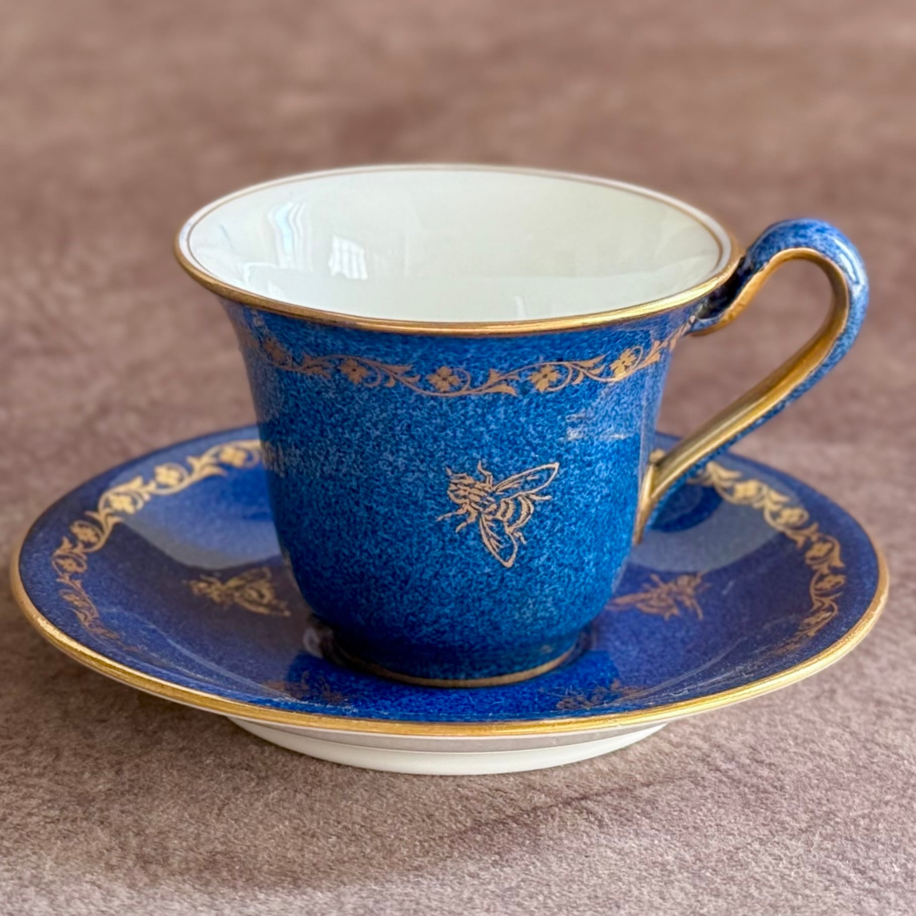 深く艶やかなパウダーブルー地に、金彩による蜂文。非常に珍しい意匠の一客です。