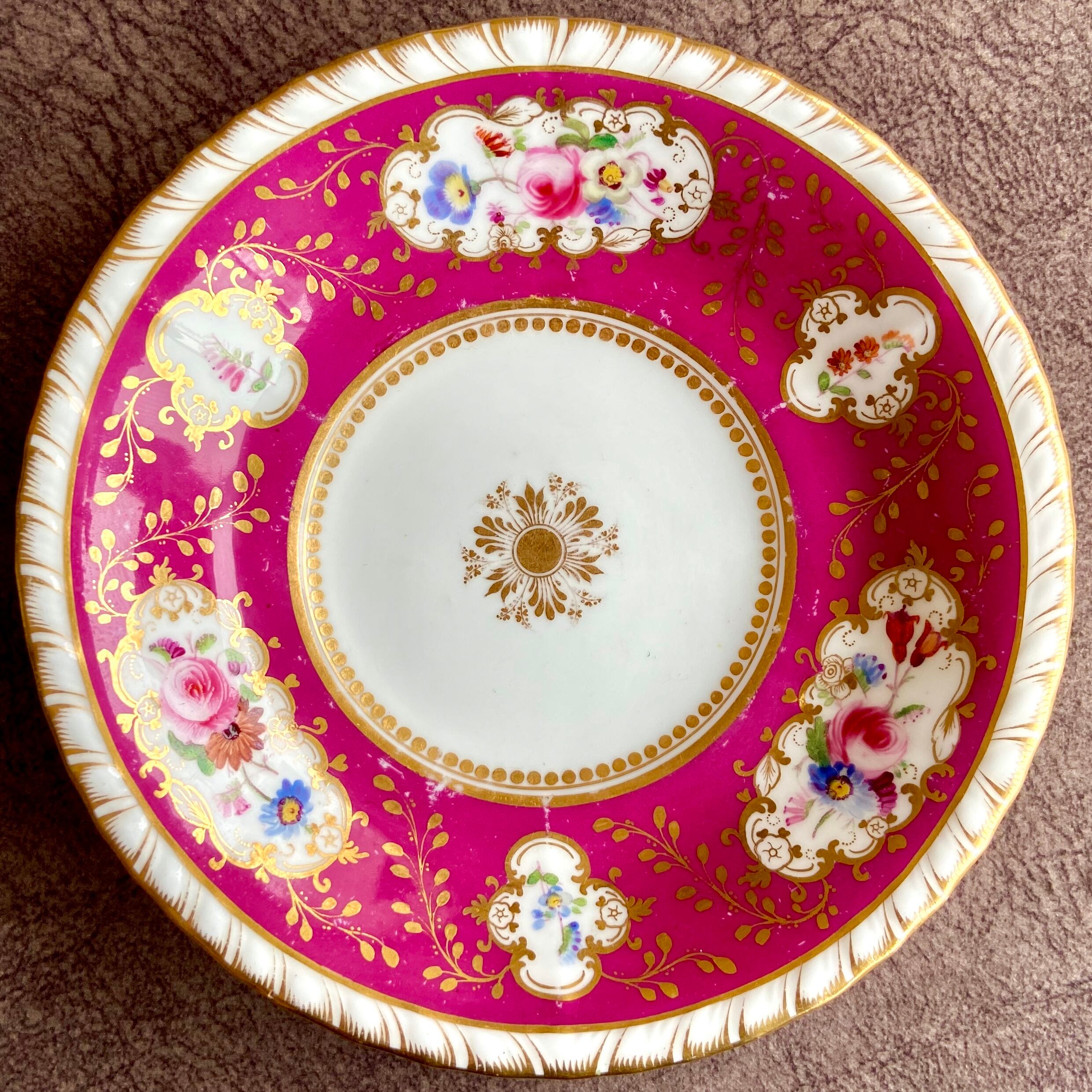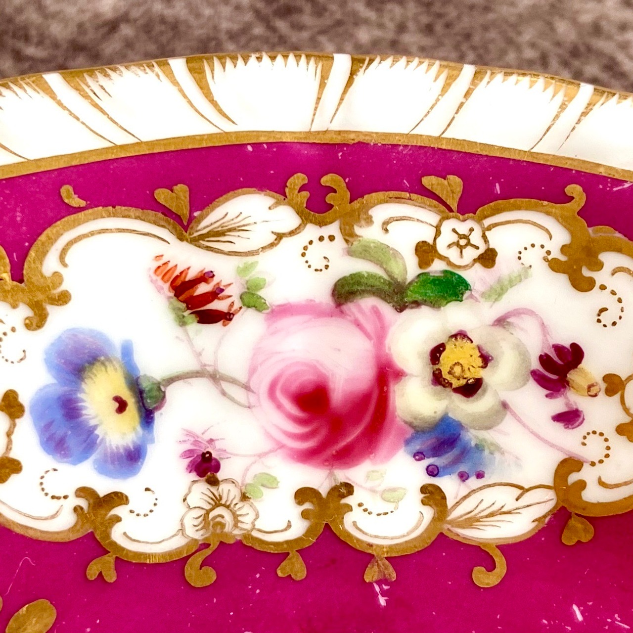 しっとりとしたマルーン彩色と、豪華な金彩、丁寧に施された花絵が美しい一客です。