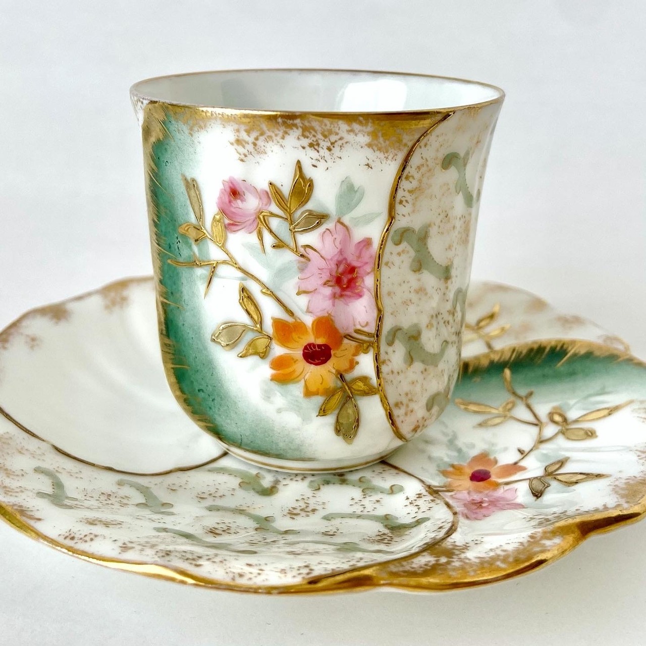 19世紀末頃のリモージュ製、美しいデミタスカップ&ソーサーです。