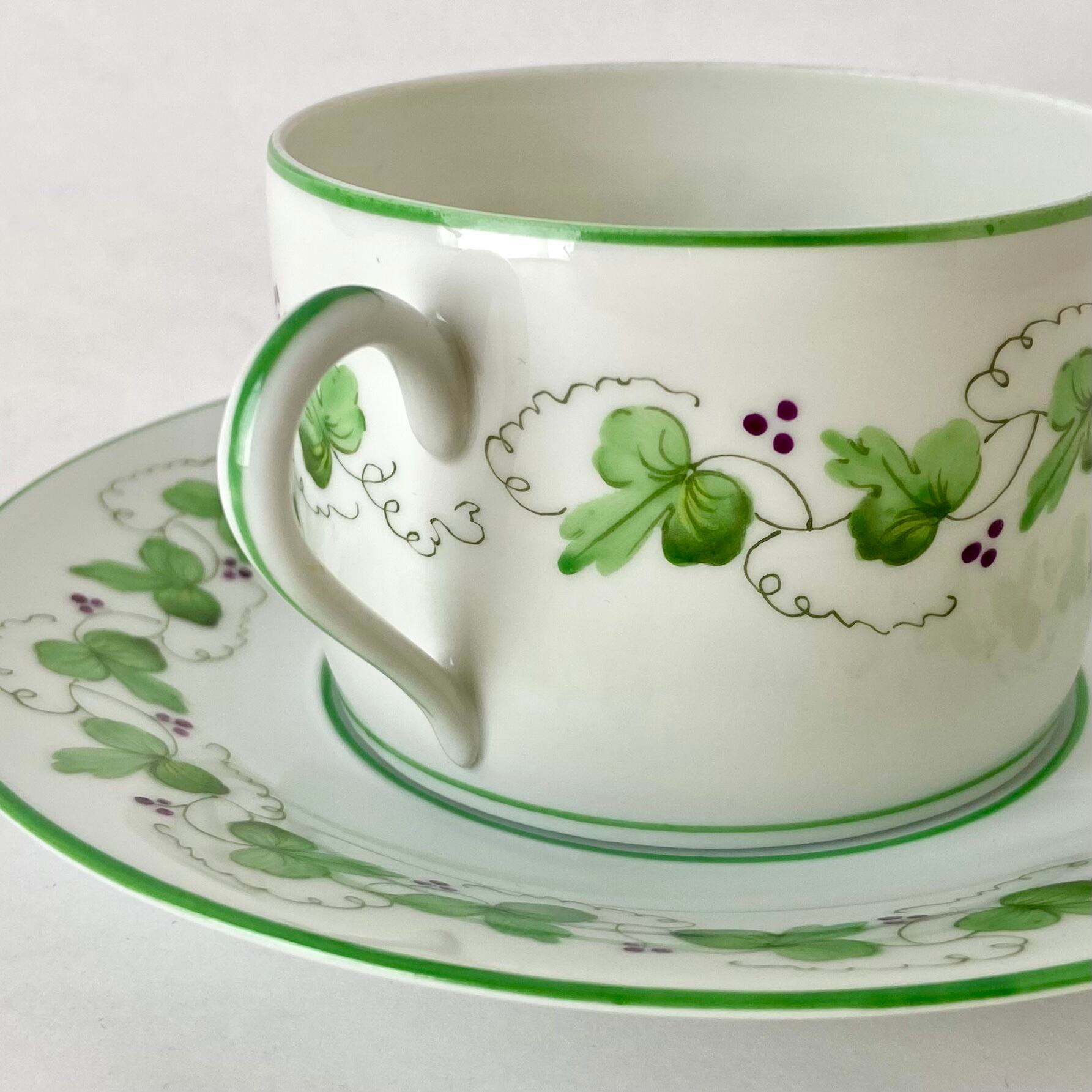 薄造りの磁胎に、繊細なタッチで瑞々しくワインリーフが描かれています。