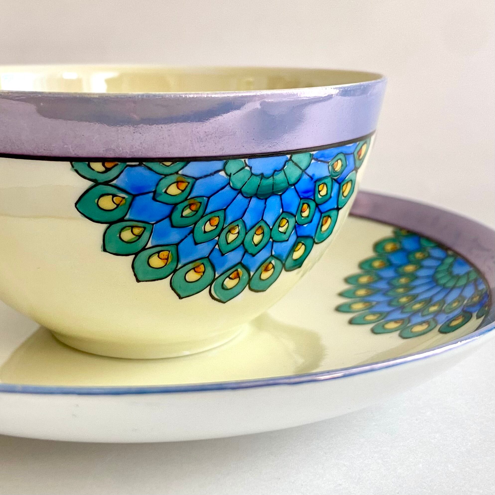 名古屋製陶所■ラスター彩 孔雀紋 カップ&ソーサー