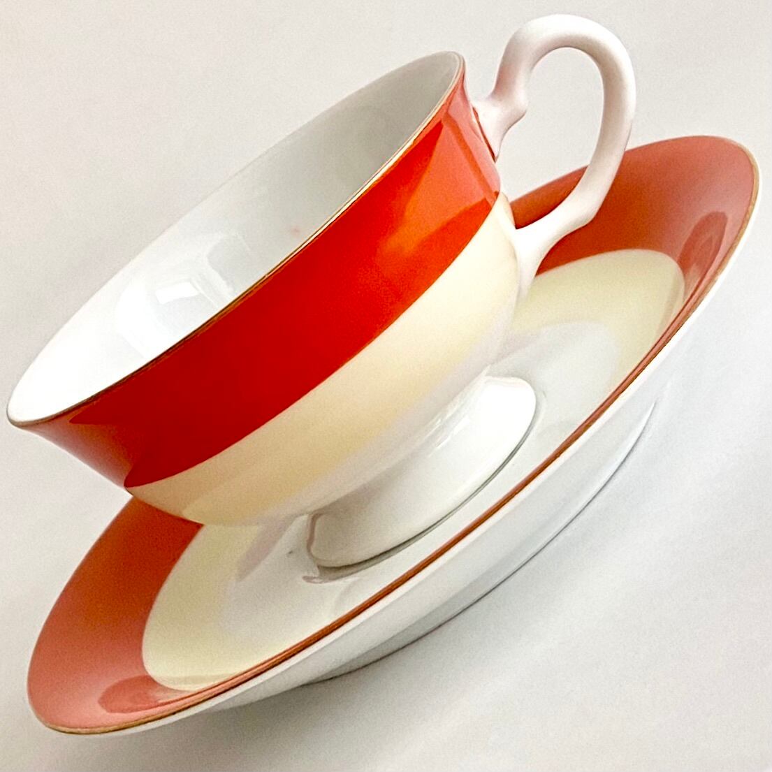 和光陶器■橙 ベージュ アールデコ カップ&ソーサー